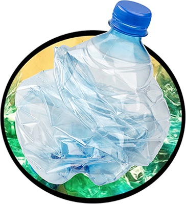 During the coffee compression process, used plastic bottles are collected from recycling centers